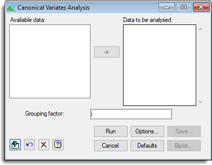 Stats | Multivariate Analysis | Canonical Variates. - Fill in the fields as required then click Run.