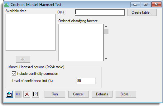 | Include continuity correction | Select this to apply a continuity correction to the Mantel-Haenszel Chi-square test. |