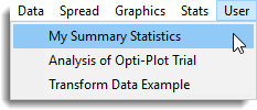 To make the add-ins accessible from Genstat save the GAD file using the file extension .gad, for example, describe.gad. Copy the file to either the system or user add-in directory. The next time you start Genstat the custom dialog should attach automatically and the menu item to open the dialog will be found under the User menu.