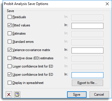Probit Analysis Save Options